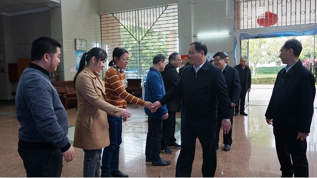 2月19日春节后上班第二天,梧州市委书记全桂寿和市委常委、秘书长徐文伟到市档案馆看望档案干部职工。